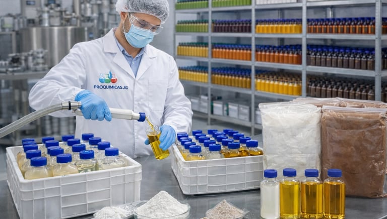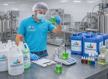 Productos Quìmicos formulados para la industria alimentaria, que complen con estrictas normas de calidad y inocuidad, garantizando seguridad y eficiencia en los procesos.